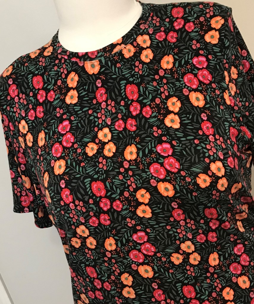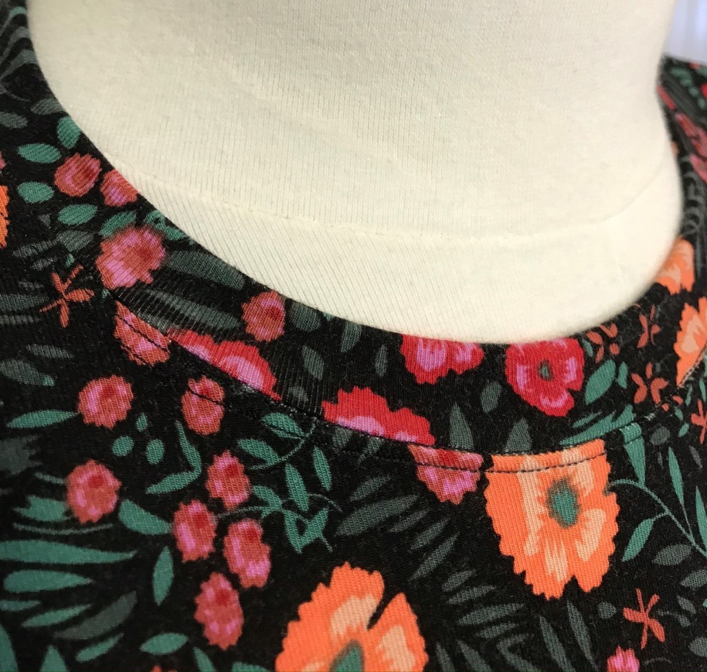 A great go-to pattern is the Lavender Tee from Mood Sewciety via pdf. The fabric is also Mood’s jersey floral. Note the double needle finishing details on the neckline and hem. Adds that extra “pop”.