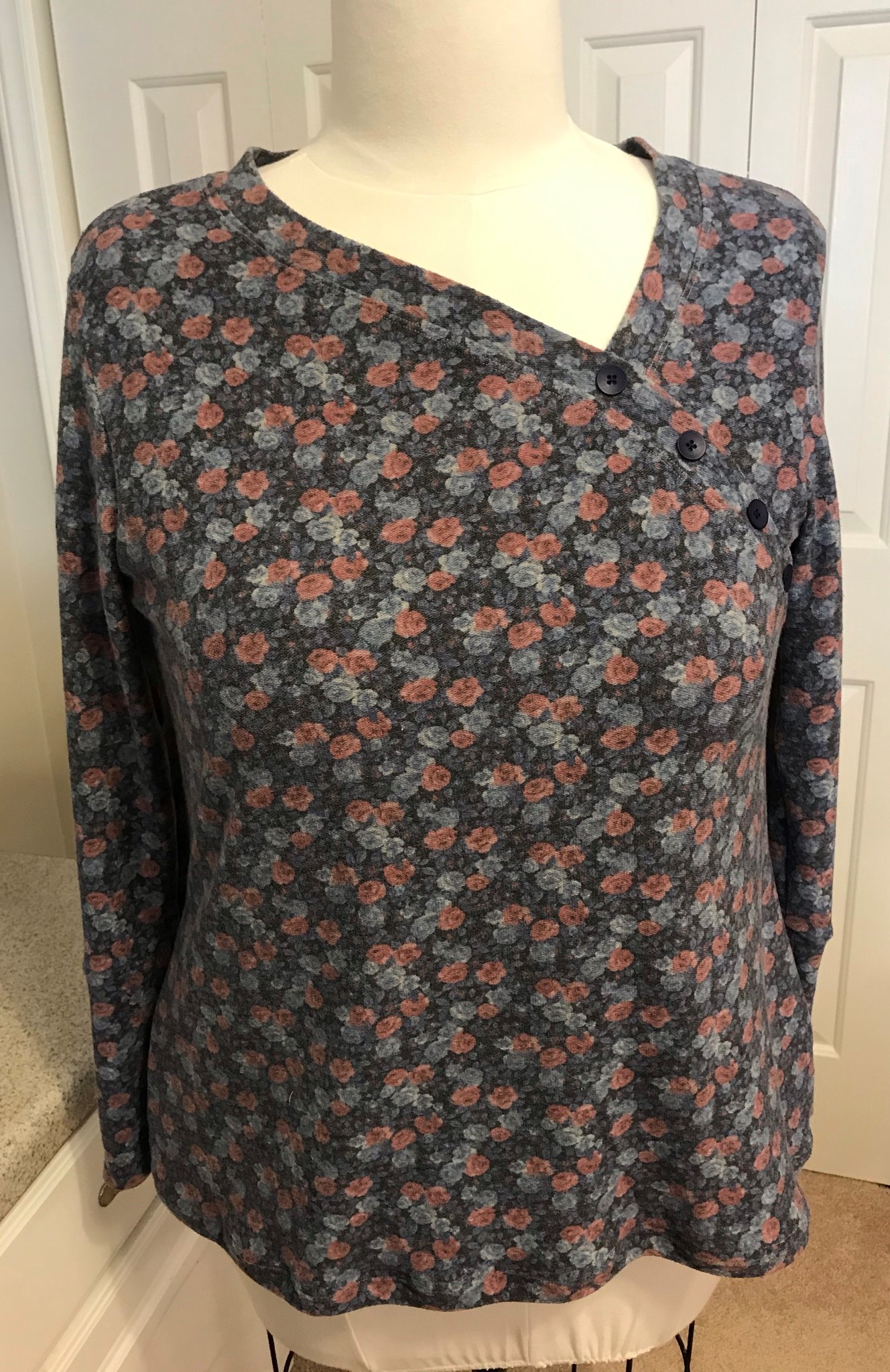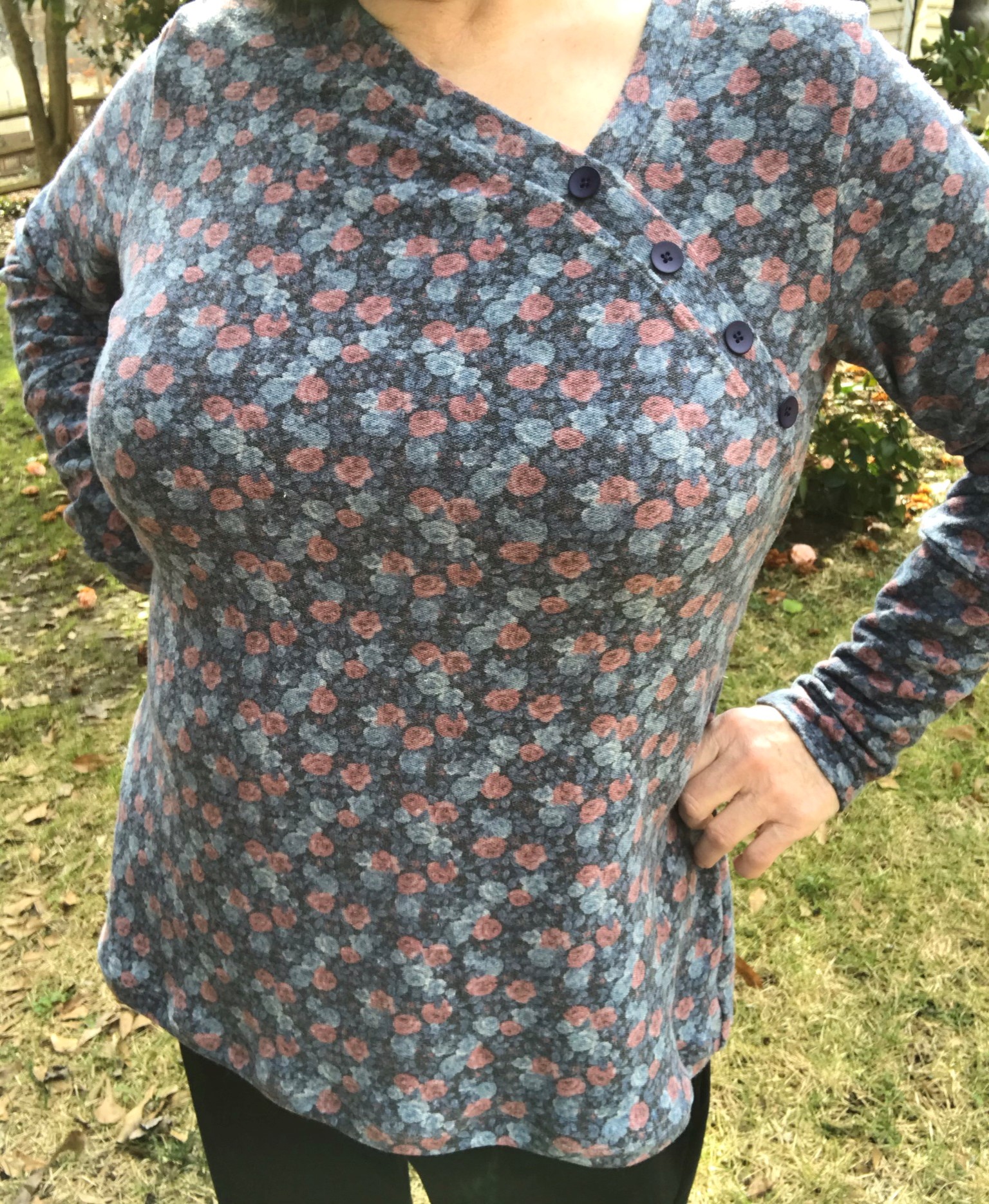 The fabric was a floral double brushed poly from my stash. The right pick for this look.